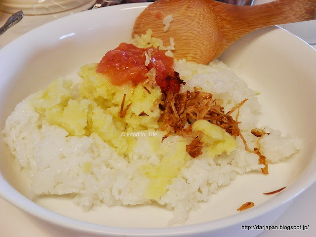 | Add cooked tomato, potato, little crispy onion, and oil to the cooked rice. Season with salt. |